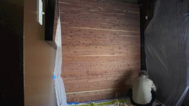 Large floor decal designed by Ben Ramirez. Modeled by Geoff Olegario.